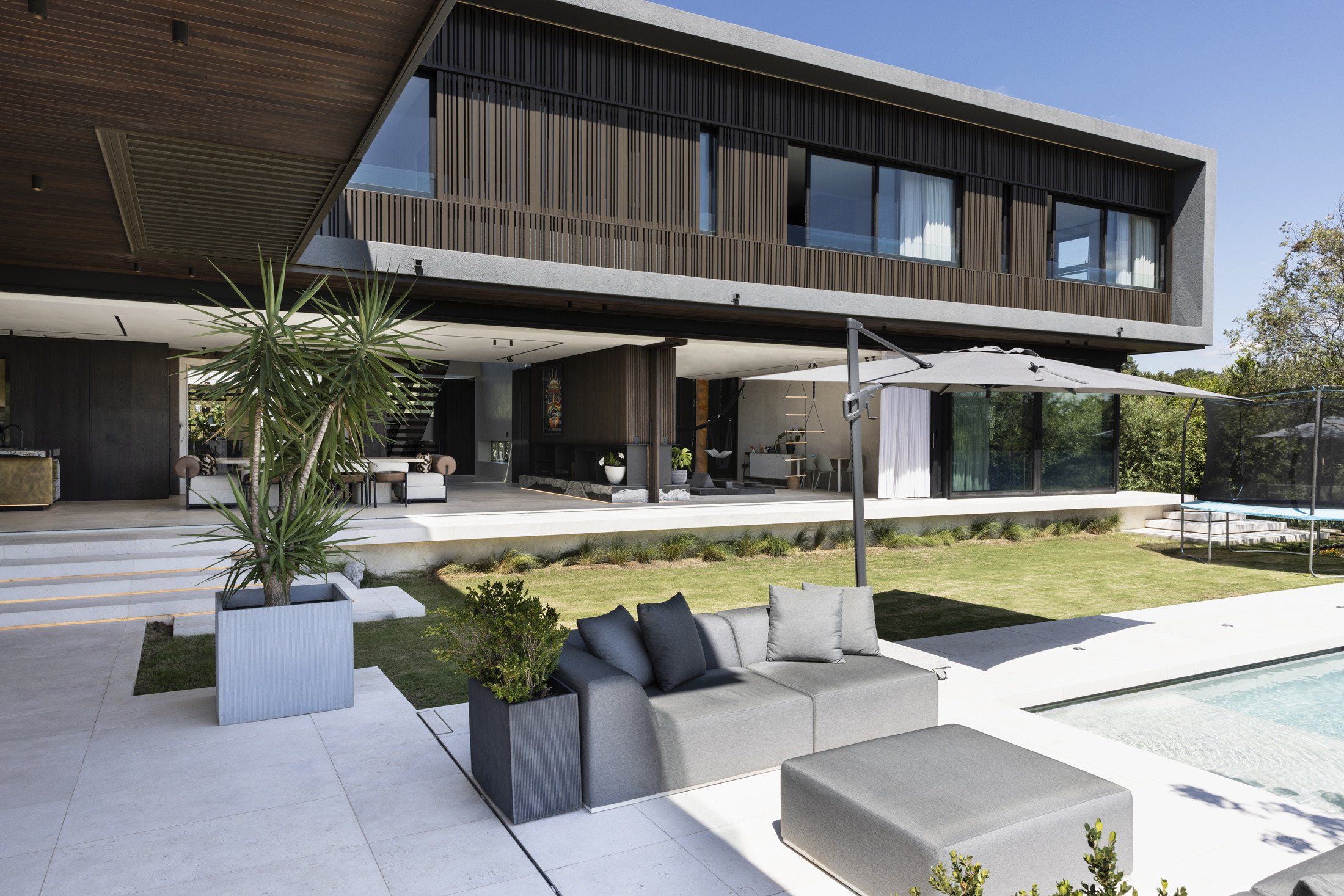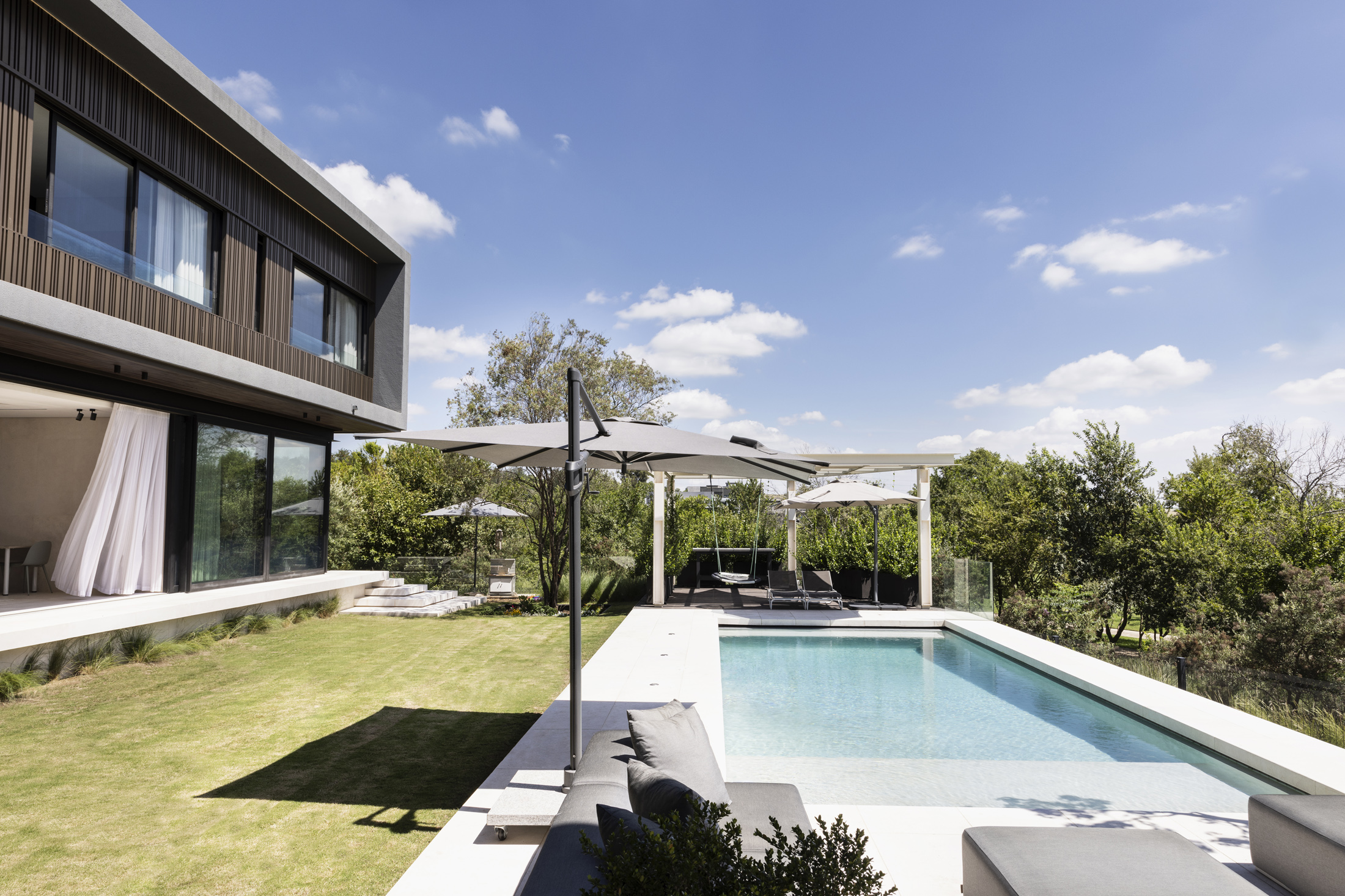 A contemporary residence designed for modern family living within the Steyn City estate. The project balances bold architectural form with carefully considered interiors and outdoor living spaces, creating a home that is both expansive and deeply connected to its landscape.